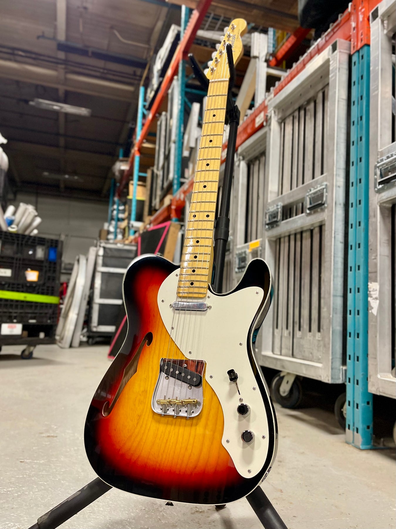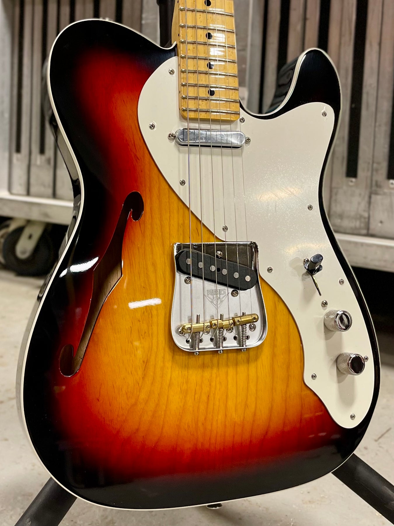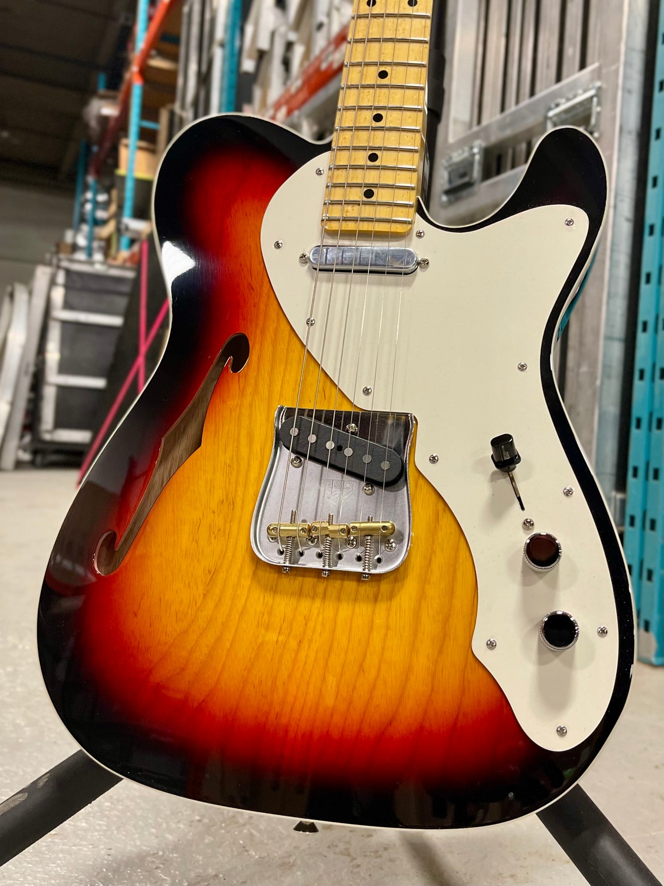 From a distance it may look like other sunburst thinline telecasters, but a closer inspection reveals it's simple beauty. My eyes first went to the birdseye maple, a rare treat. But as I began to play and my attention shifted to the incredibly comfortable body, I began to notice the striking grain of the ash top coming through the sunburst finish. At a featherweight 6.3 lbs, this thinline Telecaster is an absolute joy to play. No fatigue, just pure twangy fun strapped across your body all night long. - Jo