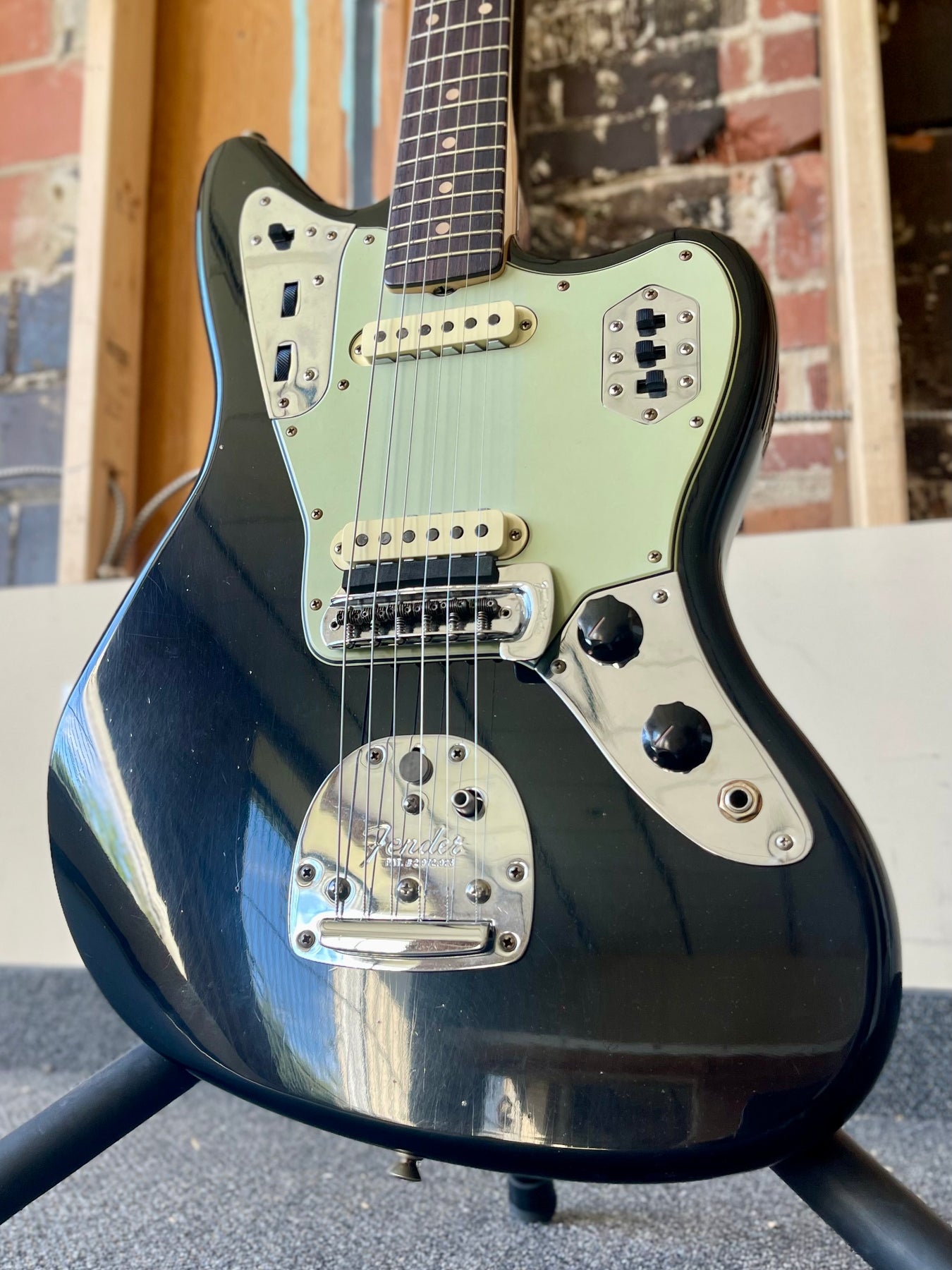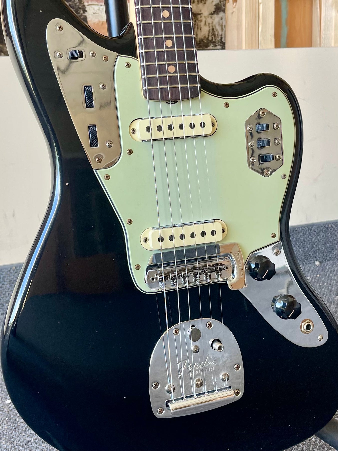 Vintage-style hardware, a 3-ply mint green pickguard, a classic 24" scale length, and a Vintage Jaguar Mute Kit complete this stunning build. Includes a deluxe hardshell case, strap, and certificate of authenticity. Zoo wee mama!
