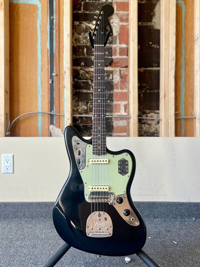 This stunning Jaguar was spec'd by Marcus and built for you! Finished in a sleek Black nitrocellulose lacquer with a Journeyman relic, the 2-piece select alder body is paired with a quartersawn maple neck and AAA rosewood fingerboard, shaped in the classic 1962 Jaguar profile with a 7.25" radius and vintage clay dot inlays.