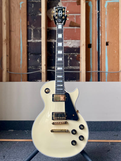 Now, after 20 years of offering the Les Paul Custom only through Gibson Custom, Gibson is proud to release the Les Paul Custom 70s. It features classic 1970s specs, including a mahogany body with a three-piece maple top. The body is bound with 5-ply top binding and 3-ply back binding. The maple neck has a 70s profile and a volute and is topped with a bound ebony fretboard with 22 medium jumbo frets and mother-of-pearl block inlays. The bound headstock is also adorned with mother-of-pearl in the form of the famous Custom Split Diamond headstock inlay, which originated with the Gibson Super 400 and has become synonymous with the Les Paul Custom. The Les Paul Custom 70s features gold hardware, including an aluminum Nashville Tune-O-Matic bridge, an aluminum Stop Bar tailpiece, and smooth-turning Grover Rotomatic with Keystone button tuners for reliable tuning stability.